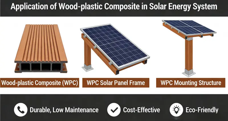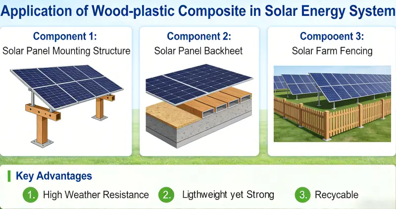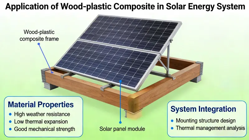 Hout-kunststofcomposiet (WPC) is uitgegroeid tot een belangrijk materiaal in zonne-energiesystemen, waaronder fotovoltaïsche (PV) steunen, drijvende elektriciteitscentrales, integratie van PV-gebouwen en geconcentreerde opslag van zonne-energie (CSP), vanwege de milieuvriendelijke, weerbestendige, lichtgewicht, onderhoudsarme en gemakkelijk te verwerken eigenschappen. Het vervangt geleidelijk de traditionele metalen en houtmaterialen.