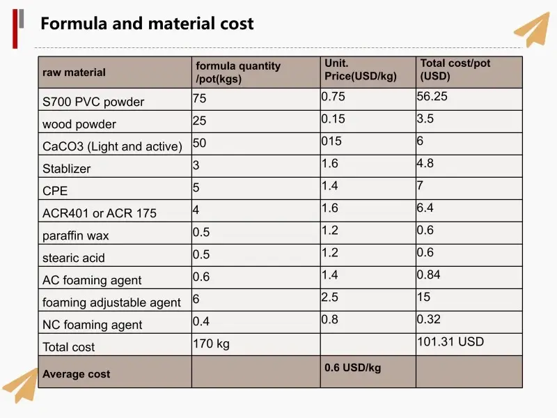 De grondstof voor het maken van WPC-deurpaneel en deurkozijn omvat: PVC-hars, houtpoeder, CaCo3 en chemische additieven. De fabrikant kan de formulering aanpassen aan de productbehoeften van de markt.