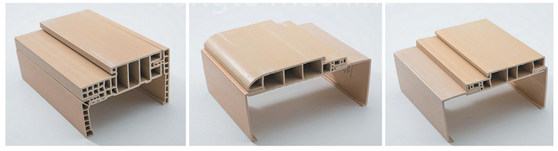 PVC-kunststof + 10-30% houtpoeder + beschermende filmcoating + behandeling met verzegelde randen |